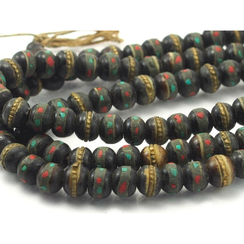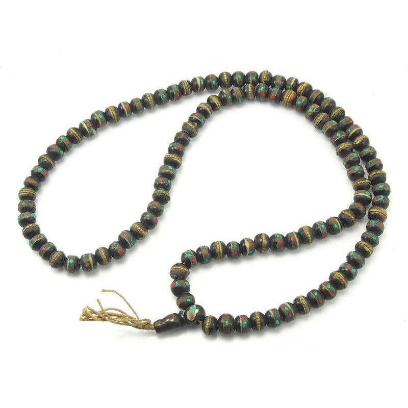 Tibetan Inlaid Cow Bone Mala Chocolate 10mm