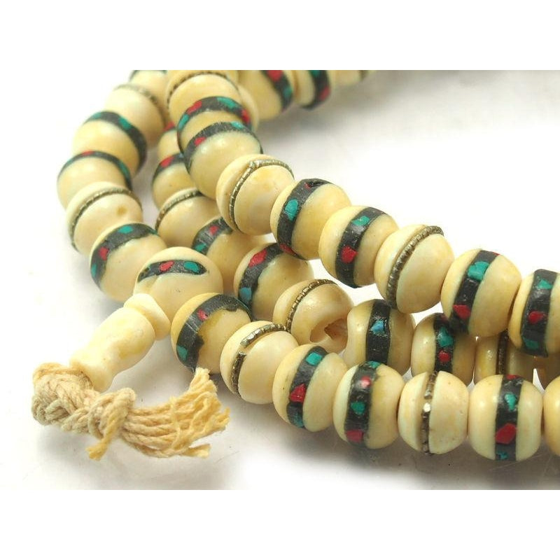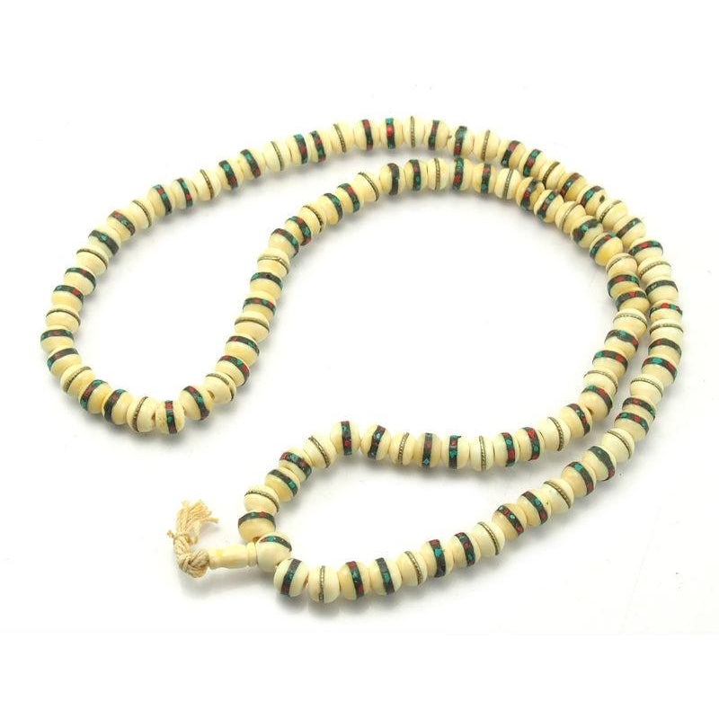 Tibetan Inlaid Cow Bone White Mala 10mm