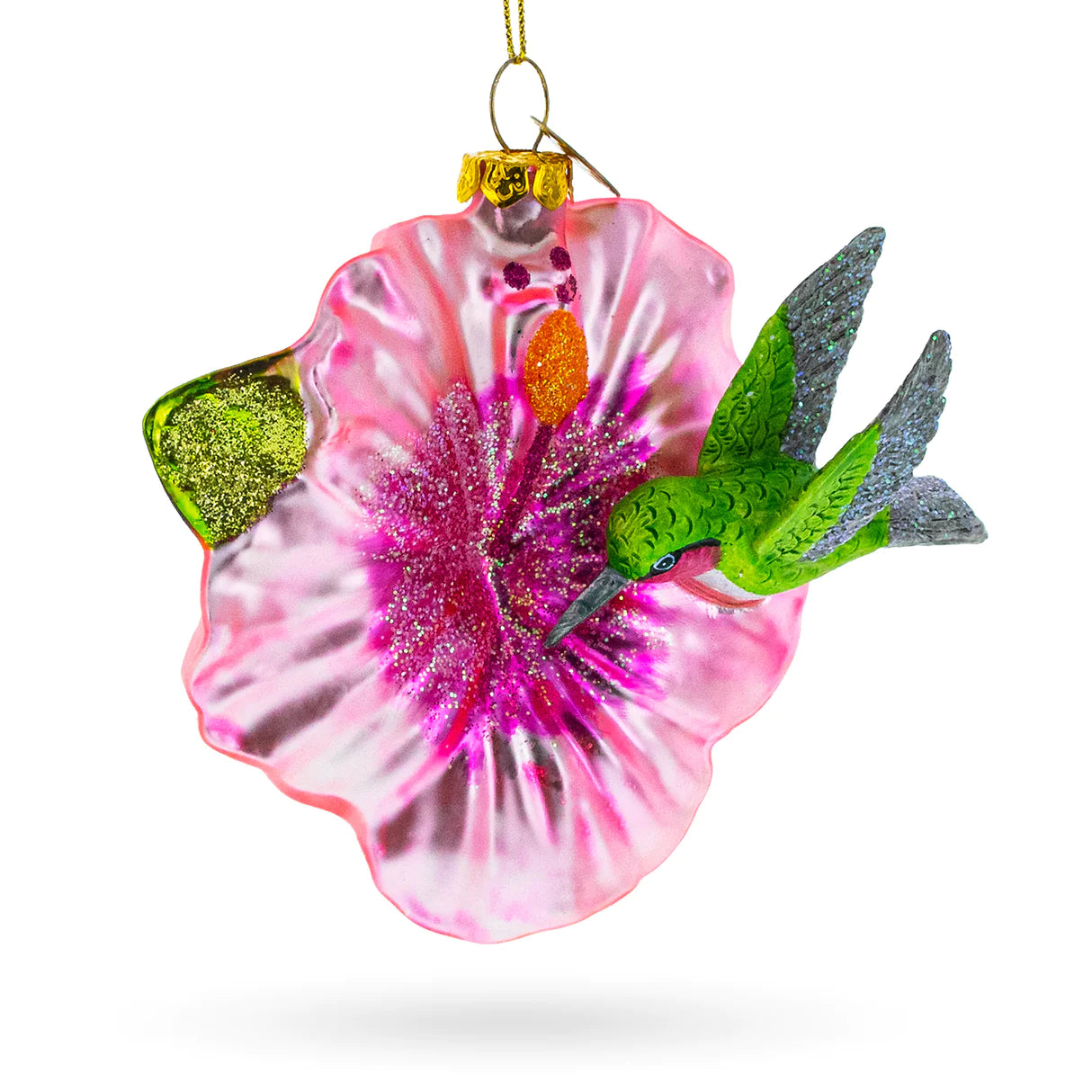Vibrant Hummingbird with Hibiscus Ornament PS