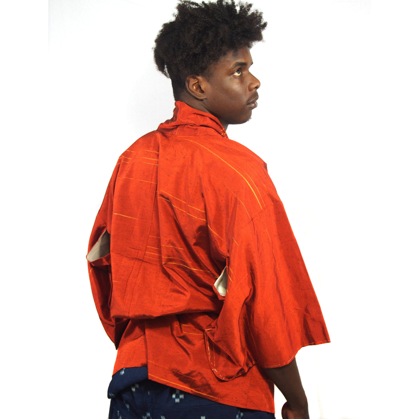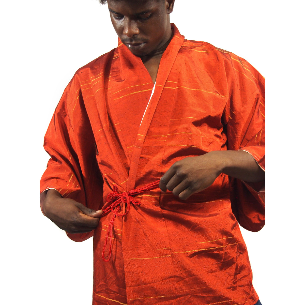 Vintage Brilliant Orange Silk Short Length Kimono