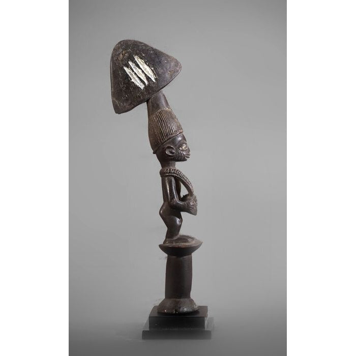 - A Yoruba Shango staff, Nigeria, a female figure posted on a columnar base, tapering, hanging breasts, a domed, stylized coiffure beneath an arrow-like panel.